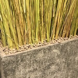 These tall ornamental grasses were harvested in South-America and stabilized to maintain their beauty for a long time. They come in large pots made of stone (width 45 cm, depth 16 cm). Light green grasses height is ca 110 cm and dark green grasses ca 135 cm.