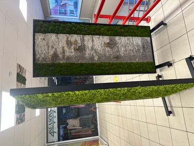 Ratastel vahesein, ruumieraldaja naturaalsetest puukoorest ja samblast