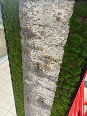 Ratastel vahesein, ruumieraldaja naturaalsetest puukoorest ja samblast