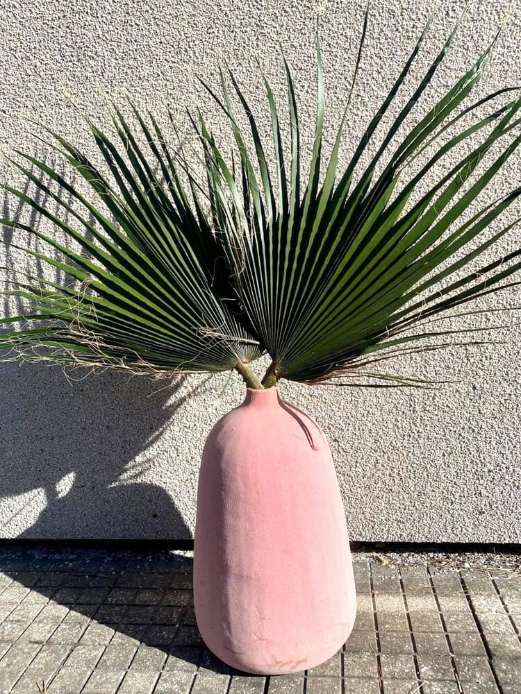 Stabiliseeritud palmioksad roosas vaasis